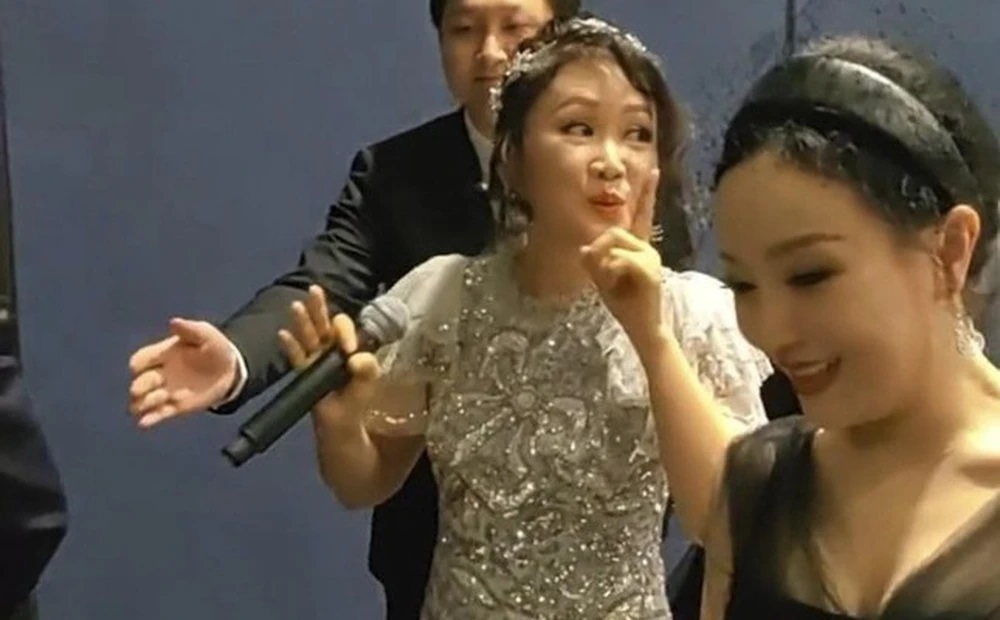Lương Tiểu Băng mặc đầm lấp lánh và được vệ sĩ hộ tống. Ảnh: HK01.