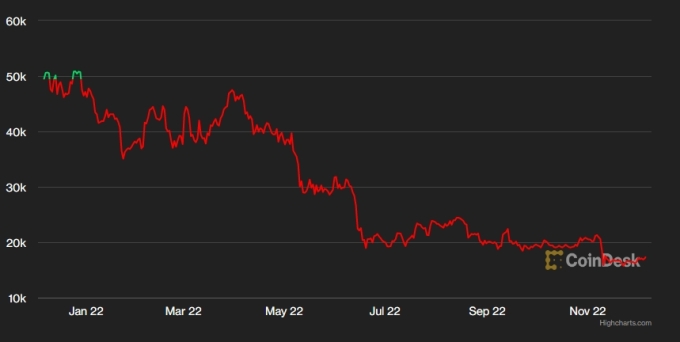 Diễn biến giá Bitcoin trong một năm qua.