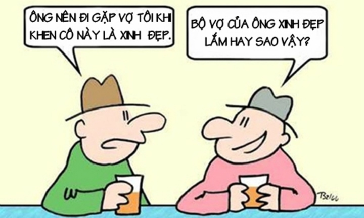 - Với nhan sắc này mà anh gọi là xinh đẹp thì anh nên gặp vợ của tôi đấy.