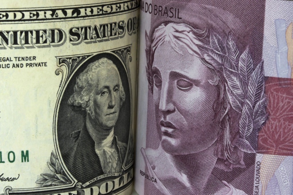 Một tờ USD đặt bên cạnh tờ tiền real của Brazil. Ảnh: Rio Times