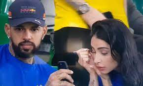 Old  Arrow Thanh niên gây sốt vì giữ điện thoại cho bạn gái trang điểm trên khán đài World Cup