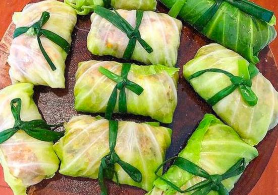 Bắp cải cuộn thịt hấp là một món khá dễ làm dù các công đoạn hơi cầu kỳ. Phần nhân với các nguyên liệu như thịt băm, cà rốt, mộc nhĩ, gia vị... trộn đều, sau đó gói vào lá bắp cải đã mềm, buộc lại bằng lá hành (cũng luộc sơ hoặc chần qua cho dai) rồi cho vào nồi hấp. Tuỳ khẩu vị, mỗi gia đình có thể biến tấu thành phần nhân khác nhau. Nếu có thời gian, hãy làm món này chiêu đãi gia đình bạn nhé!