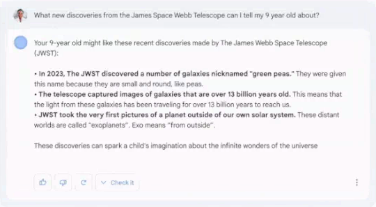 Ông Pichai cho biết, Bard "sẽ lối ra cho sự sáng tạo, là bệ đỡ cho ham muốn hiểu biết, giúp bạn giải thích cho một đứa trẻ 9 tuổi các khám phá mới của kính Thiên Văn James Webb, hay học hỏi từ những cầu thủ bóng đá giỏi nhất hiện nay và sau đó rèn luyện nên các kỹ năng của riêng mình."