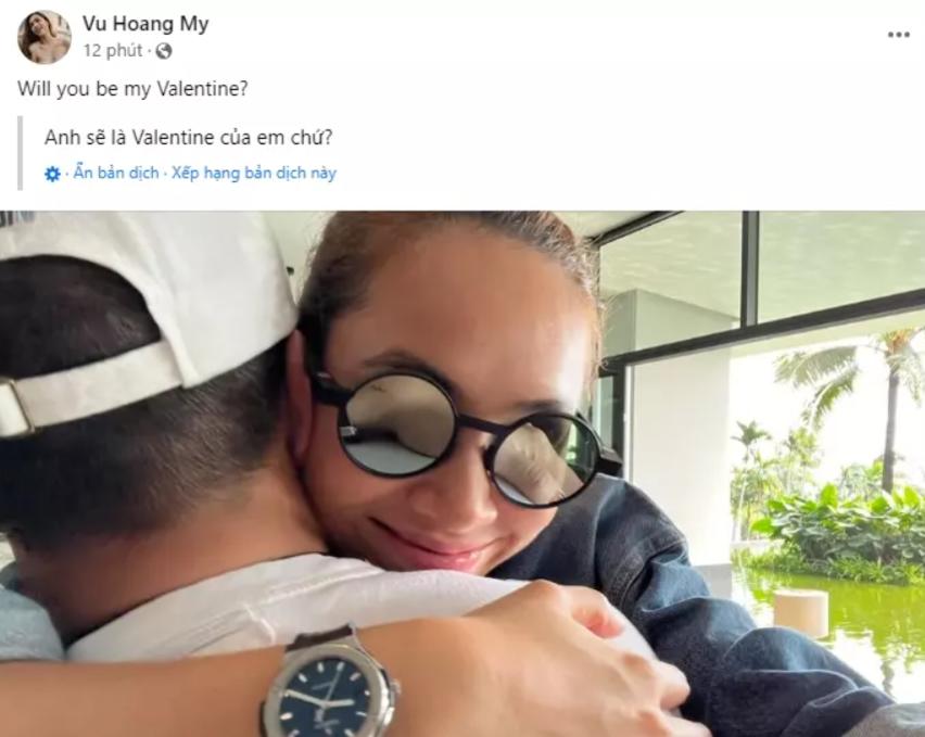 Mới đây, Hoàng My bất ngờ chia sẻ khoảnh khắc tình tứ bên người đàn ông giấu mặt. Cùng với hình ảnh, Á hậu Việt Nam 2010 bày tỏ: "Will you be my Valentine?". Việc Hoàng My xuất hiện cùng người đàn ông bí ẩn, nhắc đến Valentine khiến cư dân mạng xôn xao.