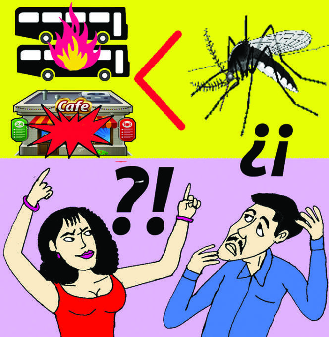 - Thấy chưa? Hai xe buýt, một quán cà phê và cửa hàng bị hỏng nát thì anh không thèm quan tâm, chỉ quan tâm đến con muỗi bé tẹo!