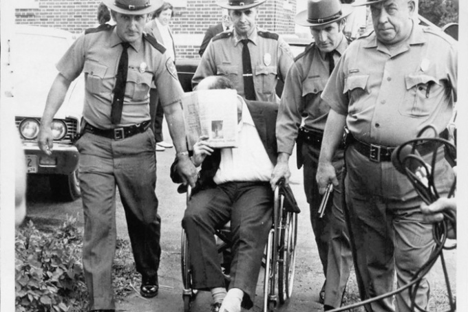 Robert Garrow vẫn giả vờ bị liệt khi ra tòa tuyên án vào năm 1974. Ảnh: Glensfallschronicle