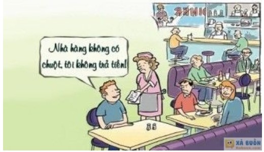 - Sai rồi! Lý do chính là thức ăn của nhà hàng này quá tệ! - vừa nói John vừa chỉ vào bàn thức ăn vẫn còn nguyên vẹn - Đây cô xem này, thịt thì nửa sống nửa khét, rau thì còn nguyên cả rễ, chuột còn không thèm ăn thì lý do gì tôi phải trả tiền chứ!