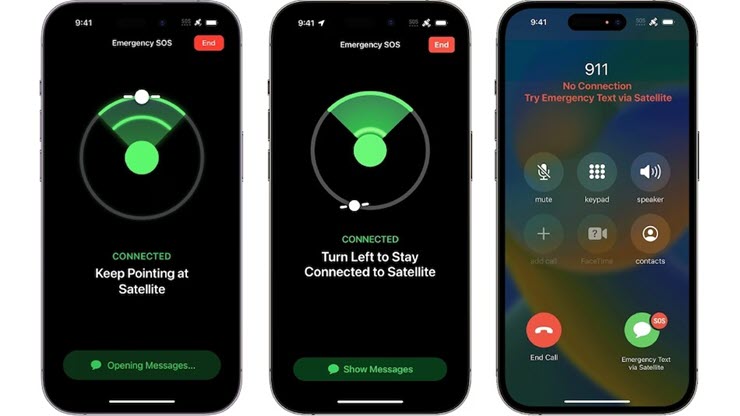 Do băng thông bị hạn chế, Apple đã phát triển một thuật toán nén kích thước tin nhắn văn bản ba lần để cải thiện tốc độ liên lạc. Kết nối vệ tinh cũng được tích hợp mặc định với tính năng phát hiện tai nạn Crash Detection.