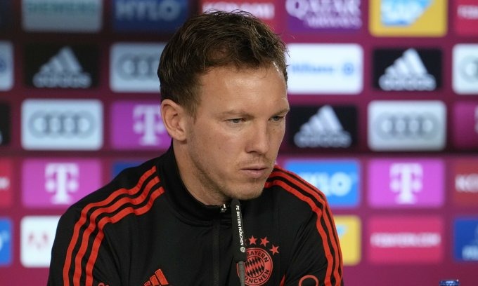 Nagelsmann tại cuộc họp báo ngày 17/3 trước trận Bayern làm khách trên sân Leverkusen cuối tuần này. Ảnh: FC Bayern