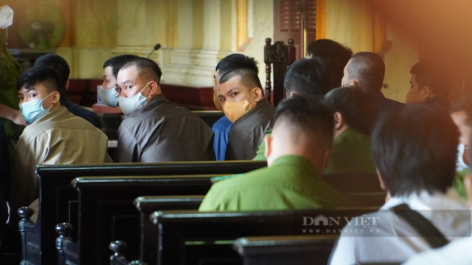 Phiên tòa xét xử vụ chém chết giang hồ Quân "xa lộ" diễn ra ngày 14/12/2021 tại TAND TP.HCM. Ảnh: Chinh Hoàng