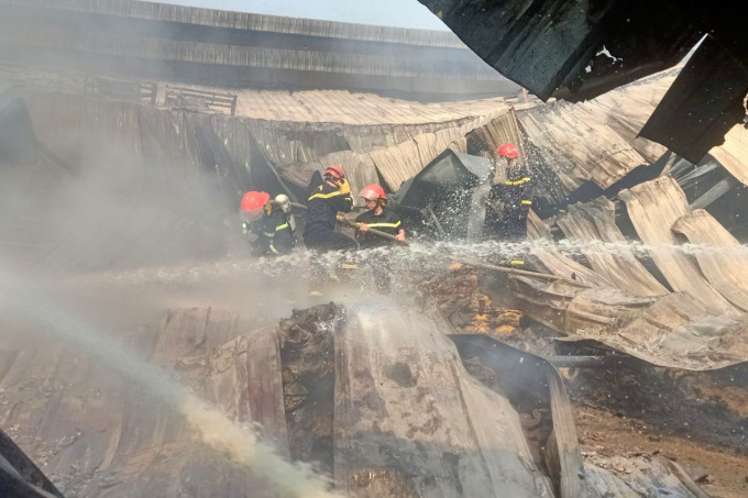 Với nhiều nguyên liệu dễ cháy như mật ong, dầu mỡ, bao bì, ngọn lửa nhanh chóng lan ra toàn khu vực kho xưởng rộng hơn 1.000 m2. Nhiều đoạn nhà xưởng với tường bêtông, lợp mái tôn bị đổ sập.