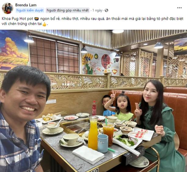 Theo đó, "Triệu phú đô la" đã đưa bà xã cùng 2 con gái đến ăn tại nhà hàng của Khoa Pug, đồng thời dành lời khen nức nở cho quán lẩu: "Khoa Pug hot pot, ngon bổ rẻ, nhiều thịt, nhiều rau quá, ăn thoải mái mà giá lại bằng một tô phở đặc biệt với chén trứng tái".