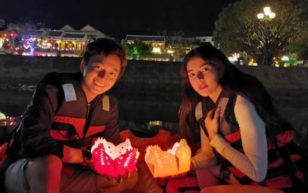 Trong ảnh, Ngô Kiến Huy và Đỗ Kim Thành vô cùng vui vẻ, thậm chí cả hai c̣n cùng nhau thả đèn hoa đăng, động thái được dân mạng cho rằng như ngầm "khẳng định chủ quyền" với nhau.