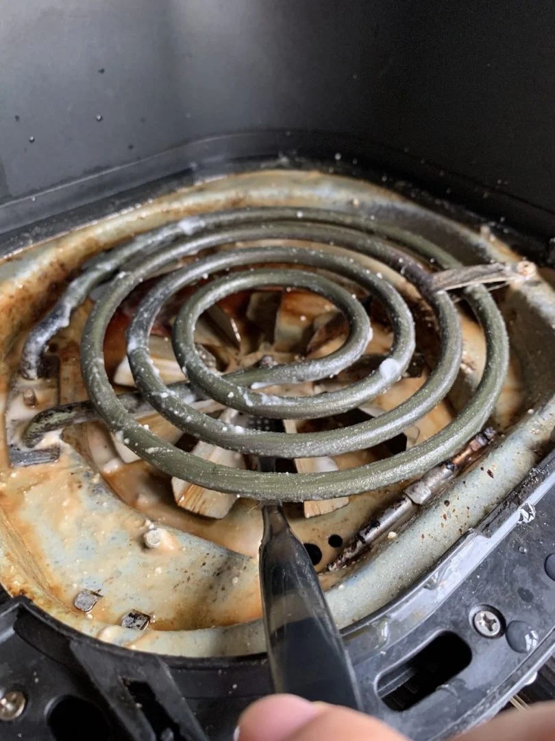 Việc rửa khay nướng của nồi chiên không dầu sau mỗi lần sử dụng là điều cần thiết nhưng chưa đủ. Bạn vẫn cần định kỳ vệ sinh thanh nhiệt điện trở bên trong nồi chiên không dầu.