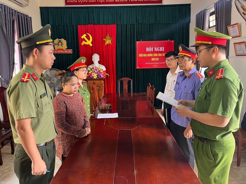 Cơ quan CSĐT Công an tỉnh Thừa Thiên Huế khởi tố, bắt tạm giam Nguyễn Thị Cẩm Vân về hành vi lừa đảo chiếm đoạt tài sản. Ảnh: K.S