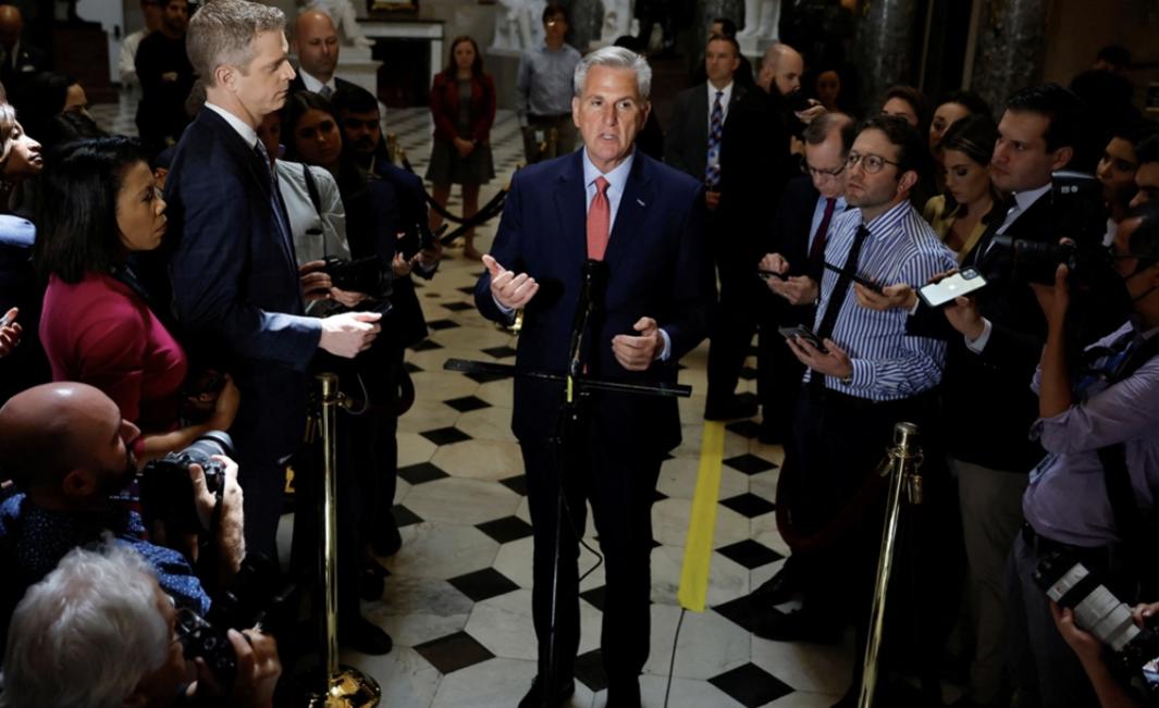 Chủ tịch Hạ viện Mỹ Kevin McCarthy trả lời giới truyền thông tại thủ đô Washington hôm 24-5. Ảnh: REUTERS