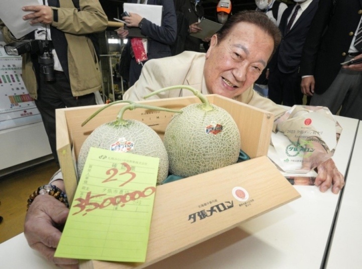 Mua cặp dưa lưới với giá gần 25.000 USD. Vừa qua hai trái dưa lưới Yubari vừa được một doanh nghiệp Nhật Bản đấu giá thành công với giá 3,5 triệu yen ở Hokkaido.