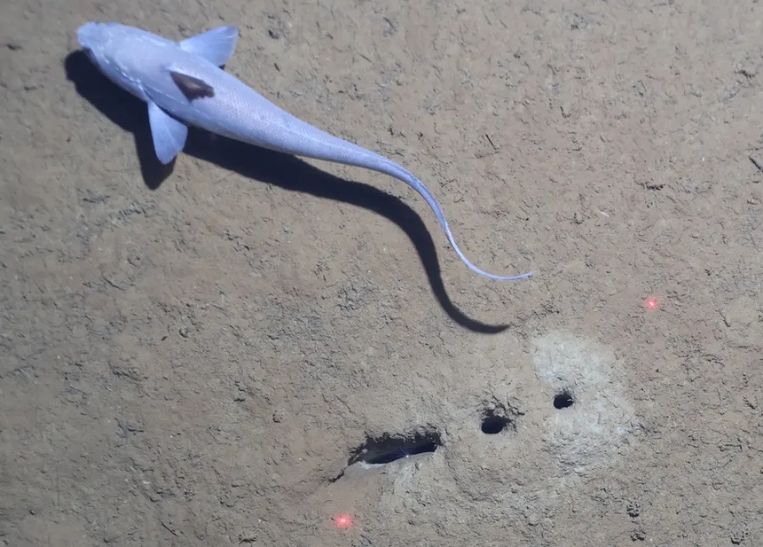 Con cá grenadier bơi gần dãy lỗ dưới đáy biển. Ảnh: Thư viện trực tuyến Wiley.