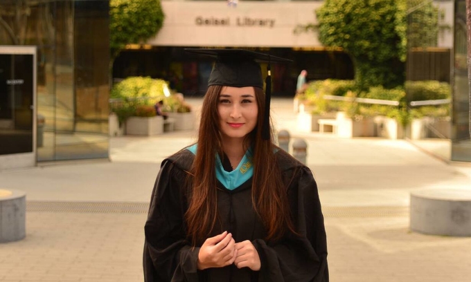 Sasha Mai trong lễ tốt nghiệp thạc sĩ về chính sách toàn cầu tại Đại học California San Diego, Mỹ, năm 2016. Ảnh: Facebook/Sasha Mai