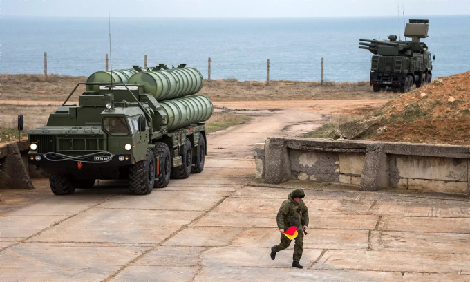 Tổ hợp phòng không S-400 và Pantsir Nga trên bán đảo Crimea tháng 1/2018. Ảnh: RIA Novosti