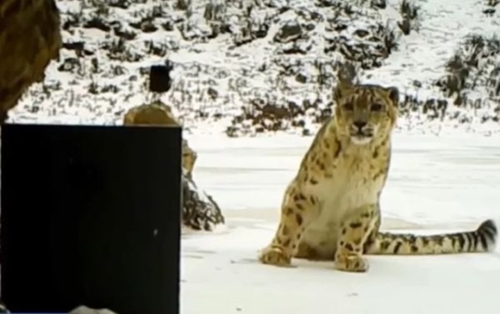 Trong hình ảnh được chia sẻ có thể thấy, con báo tuyết ở khu bảo tồn động vật hoang dã tình cờ đi ngang qua và bị thu hút bởi chiếc gương lớn được nhân viên kiểm lâm đặt trong góc, nó tò mò đến gần tấm gương một cách thận trọng.