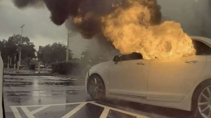 Bà mẹ ở bang Florida bỏ con nhỏ trong ôtô bốc cháy khi đi vào trung tâm thương mại ăn cắp. Ảnh: ABC