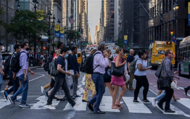 Nhân viên đến văn phòng làm việc trong giờ cao điểm ở Manhattan, New York. (Ảnh: NY Times)