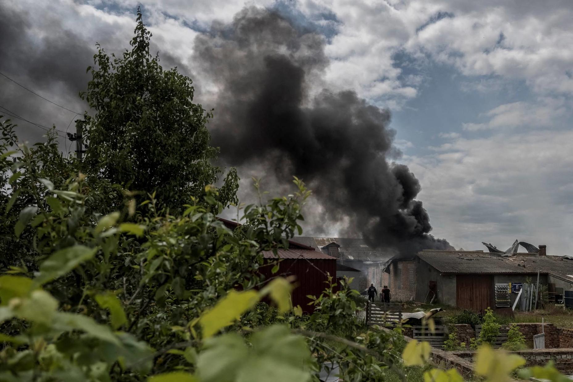 Khói bốc lên sau vụ pháo kích gần biên giới Ukraine-Nga ở thị trấn Vovchansk, vùng Kharkov của Ukraine hôm thứ Hai 4/6. Ảnh REUTERS