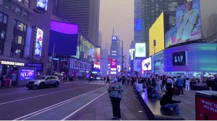 Các trường học trên khắp Bờ Đông Hoa Kỳ đã hủy bỏ các hoạt động ngoài trời, giao thông hàng không bị chậm lại và hàng triệu người Mỹ được khuyến cáo ở trong nhà vào hôm thứ Tư, 7 tháng 6, khi khói từ các đám cháy rừng ở Canada bay về phía nam, bao phủ các thành phố trong màn sương mù dày đặc màu vàng nhạt. Reuters cho hay Cơ quan thời tiết quốc gia Hoa Kỳ đã ban hành khuyến cáo chất lượng không khí cho hầu như toàn bộ bờ biển Đại Tây Dương. Giới chức y tế từ Vermont đến South Carolina và đến tận phía tây như Ohio và Kansas đã khuyến cáo người dân rằng việc dành thời gian ở ngoài trời có thể gây ra các vấn đề về hô hấp vì mức độ các hạt mịn cao trong không khí. Trong tuyên bố bằng văn bản, Tòa Bạch Ốc cho biết tổng thống Joe Biden vào hôm thứ Tư, 7 tháng 6, đã trò chuyện với ông Justin Trudeau, Thủ tướng Canada, để đề nghị hỗ trợ thêm. Tòa Bạch Ốc nói thêm rằng Hoa Kỳ đã bố trí hơn 600 lính cứu hỏa và nhân viên hỗ trợ để giúp dập lửa. AccuWeather, dịch vụ dự báo tư nhân của Hoa Kỳ, tuyên bố khói mù dày đặc và bồ hóng trải dài từ trên cao xuống mặt đất đã đánh dấu đợt bùng phát khói cháy rừng trầm trọng nhất từng bao trùm miền Đông Bắc Hoa Kỳ trong hơn 20 năm. Các nhà chọ trời nổi tiếng thế giới của New York dường như đã biến mất dưới màn khói mờ ảo. Một số cư dân xác nhận lượng khói này đã khiến họ cảm thấy không khỏe.