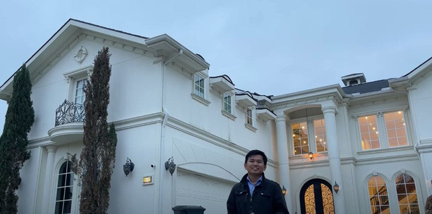 Vương Phạm bên biệt thự triệu đô sang trọng của mình trên đất Mỹ. (Ảnh: FBNV