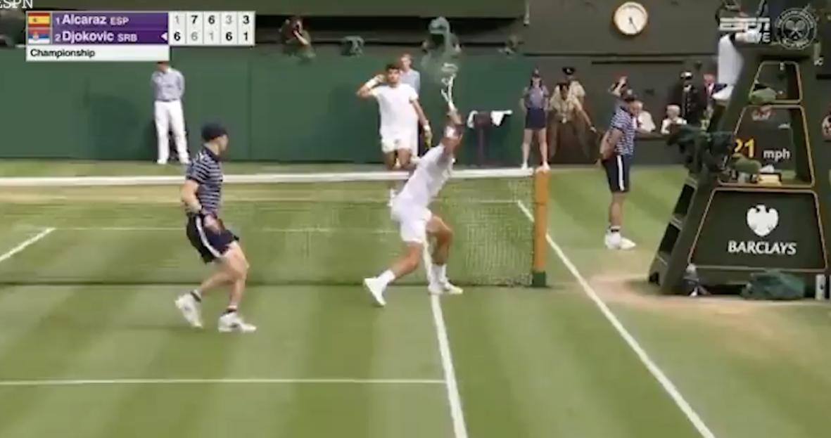 Trong suốt trận đấu kéo dài gần 5 tiếng đồng hồ ở Centre Court, Djokovic liên tục bị Alcaraz đẩy vào thế phải đua sức và có phần hụt hơi sau các tình huống lên lưới xuất sắc của đối thủ.