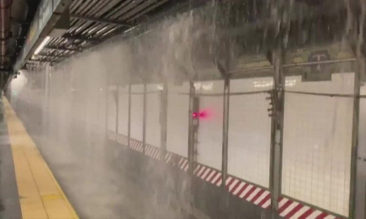 Cơ quan Giao thông Đô thị (MTA) ngày 29/8 công bố video và hình ảnh về cảnh nước chảy như thác tại ga số 42 Quảng trường Thời đại ở Manhattan, trung tâm thành phố New York, lúc 3h.