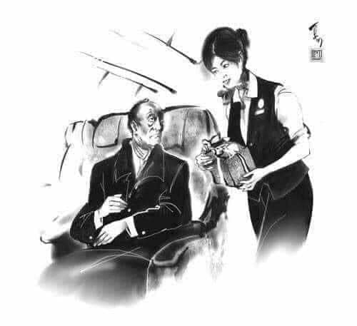 Một cô tiếp viên hàng không bỗng đi đến gần ông và hỏi một câu nhẹ nhàng: