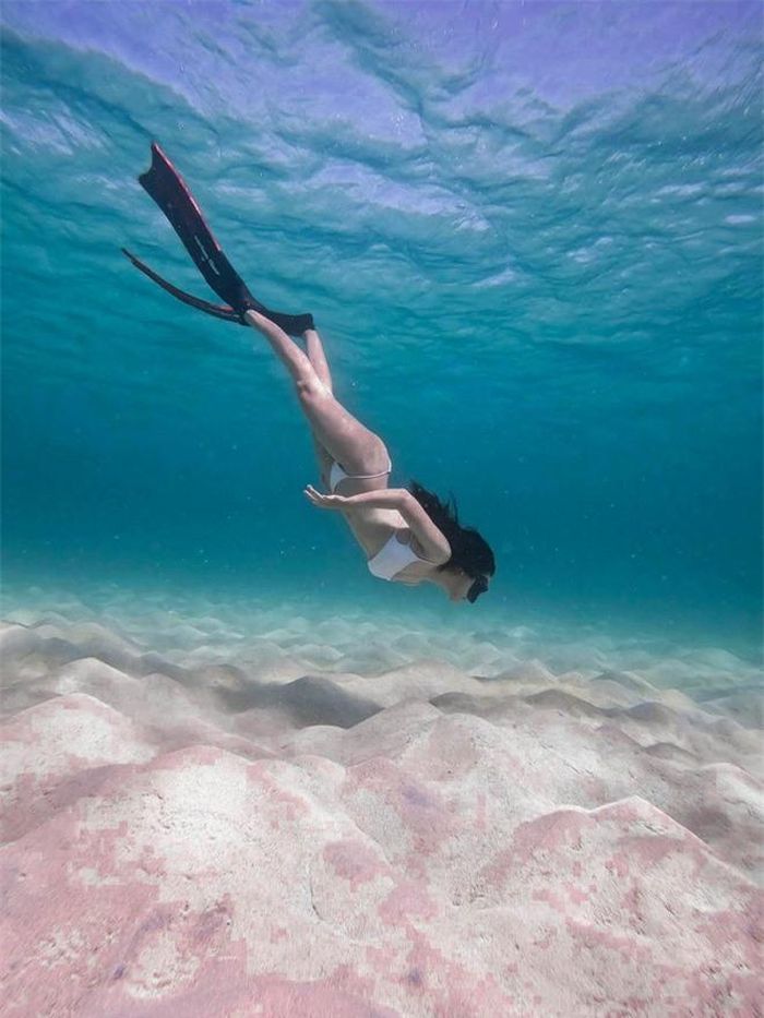 Đan Thanh cho rằng, lặn tự do là phương pháp thiền trị liệu rất tốt, đặc biệt là khi cô không thể tập trung thiền trên bờ. Cô nàng có trải nghiệm tuyệt vời khi ngụp lặn giữa đại dương mênh mông.