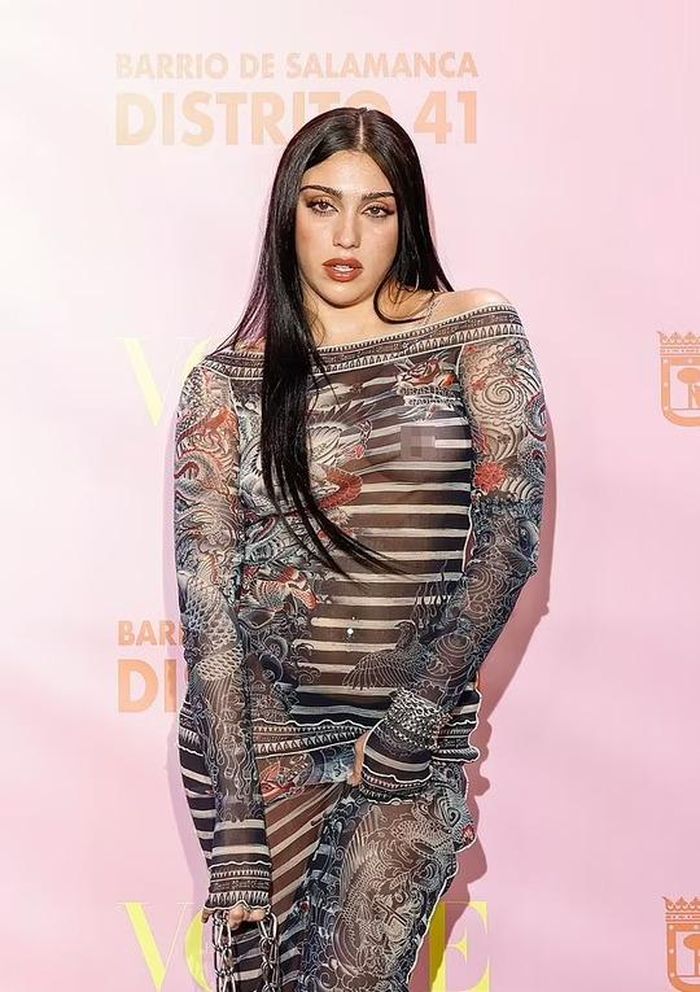 Nữ ca sĩ, người mẫu, vũ công Lourdes Leon, con gái nữ hoàng nhạc pop Madonna, gây sốc trên thảm đỏ khi thả rông vòng một đầy táo bạo, diện đầm xuyên thấu khoe thân hình đồng hồ cát.