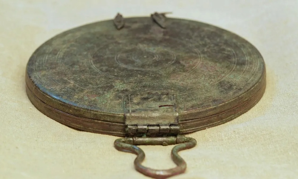 Gương hộp bằng đồng được chôn cùng tro cốt của người phụ nữ. Ảnh: Emil Aladjem/Cơ quan Cổ vật Israel