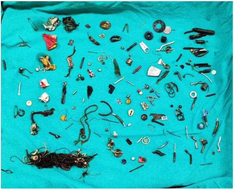 Những vật dụng các bác sĩ lấy ra từ bụng của Kuldeep Singh.