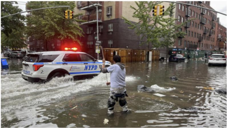 Thị trưởng New York, ông Eric Adams kêu gọi người dân hạn chế ra ngoài do một số tuyến phố bị phong tỏa và nhà ga tàu điện ngầm bị ngập lụt. Các hình ảnh chia sẻ khắp New York cho thấy nhiều ô tô bị ngập một nửa trong nước và giao thông hỗn loạn, trong khi một số tuyến tàu điện ngầm ở quận Brooklyn phải tạm dừng hoạt động.