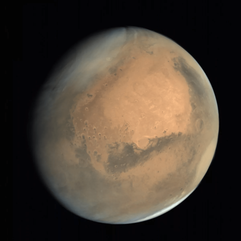 Bức ảnh sao Hỏa do camera của Mangalyaan chụp ngày 28/9/2014, từ độ cao 74.582 km. H́nh ảnh: ISRO / ISSDC / Emily Lakdawalla