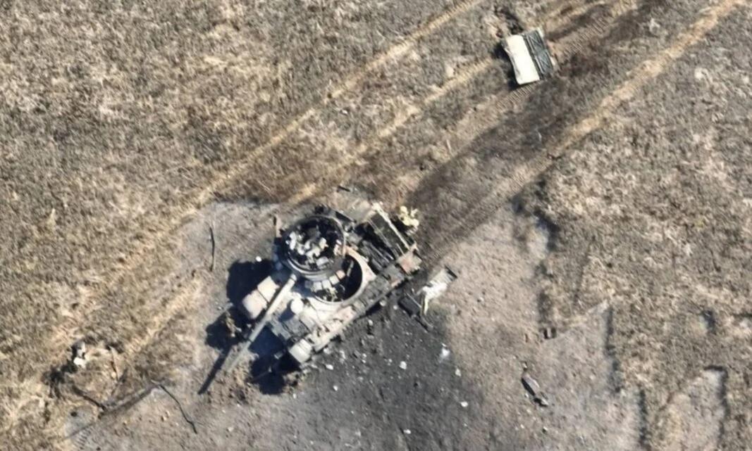 Một xe tăng Nga bị phá hủy trên chiến trường. Ảnh IT