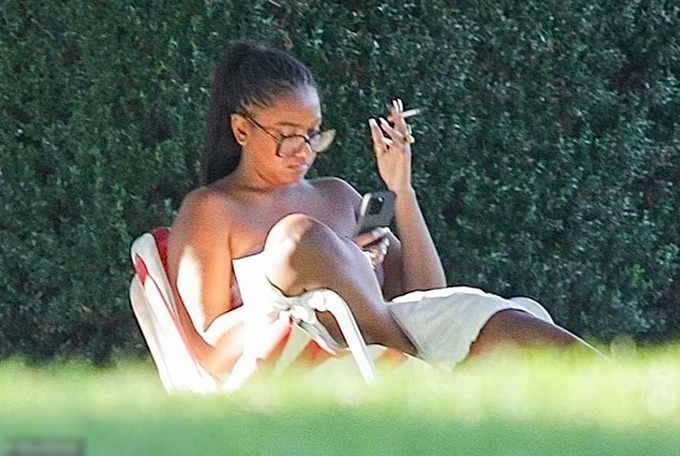 Sasha Obama tận hưởng ngày cuối tuần yên bình ở Los Angeles bằng cách ngồi dưới một tán cây, đắm mình trong ánh nắng cuối hè với một cuốn sách và một điếu thuốc.