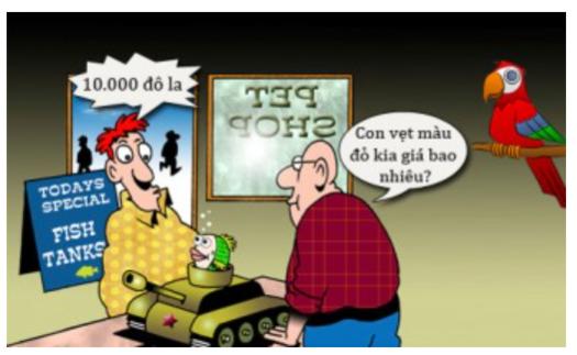 - Ồ, vậy con vẹt màu đỏ kia giá bao nhiêu?