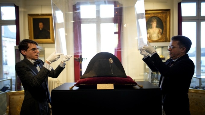 Mũ của Napoleon trưng bày trước phiên đấu giá ở Paris ngày 6/11. Ảnh: AFP