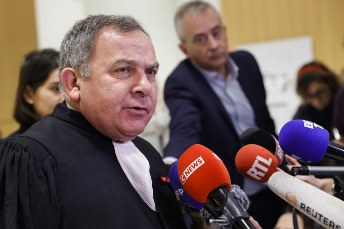 Luật sư Francis Szpiner đại diện cho gia đình nạn nhân Samuel Paty phát biểu sau khi tuyên án ở Paris ngày 8/12. Ảnh: AFP