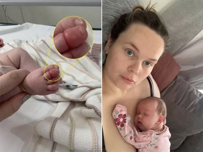 Bé gái sơ sinh suýt mất một ngón chân vì vô tình bị sợi tóc của mẹ quấn chặt, khiến máu không lưu thông.