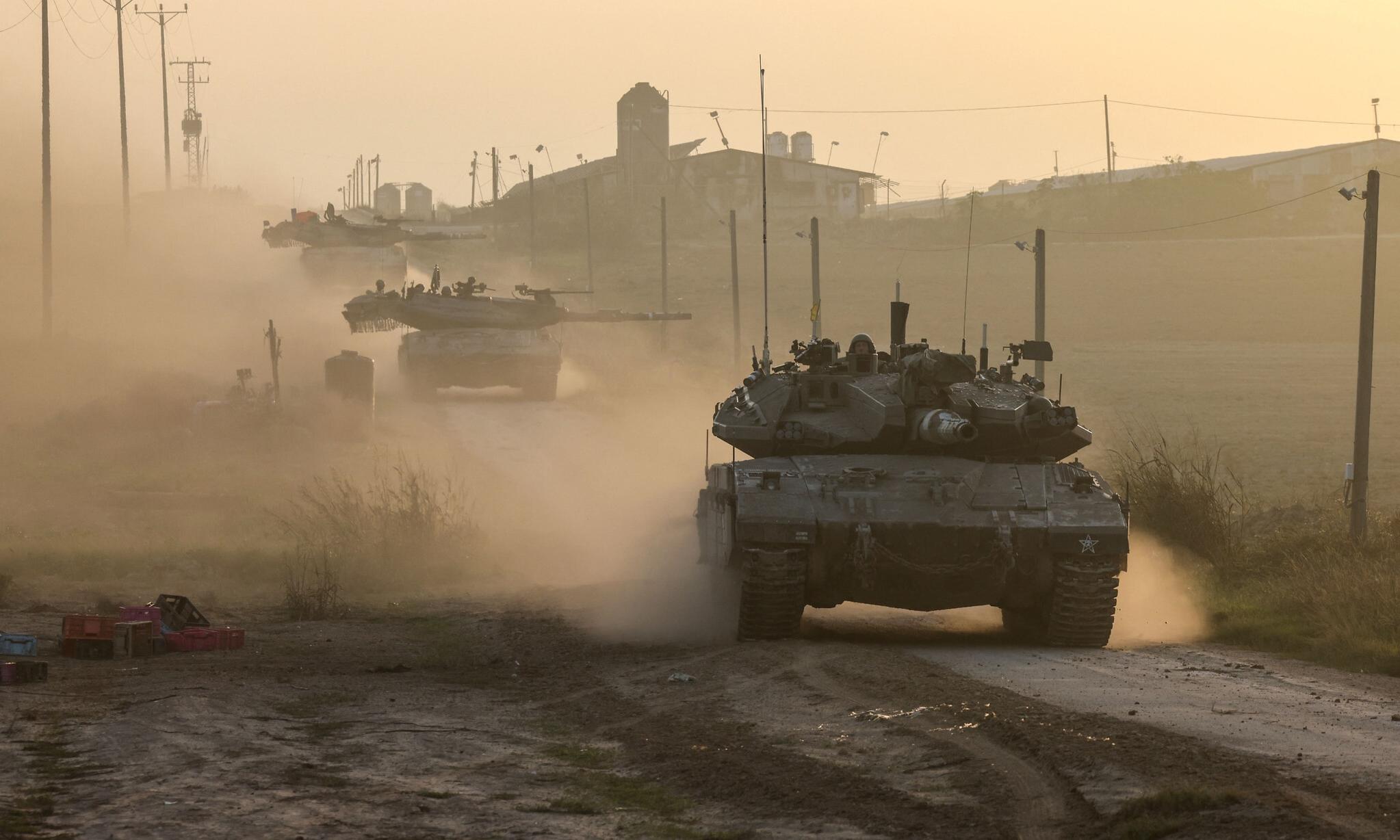 Các phương tiện chiến đấu của quân đội Israel di chuyển gần biên giới Dải Gaza hôm 3/12. Ảnh: AFP