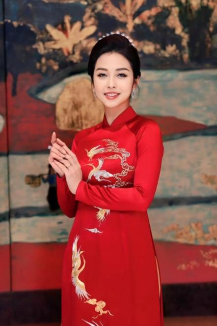 Hoa hậu Jennifer Phạm vô cùng dịu dàng, đằm thắm trong tà áo dài. Nhan sắc của cô ngày càng thăng hạng theo thời gian. Sau cuộc hôn nhân đầu không trọn vẹn, Jennifer Phạm tìm được bến đỗ mới bên doanh nhân Nguyễn Đức Hải.