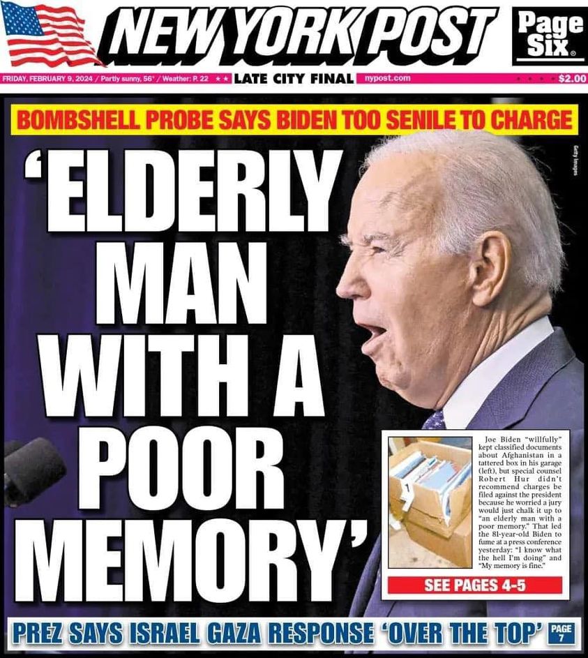 Ngày hôm sau, nhiều phương tiện truyền thông đã đứng ra bảo vệ Biden và tấn công báo cáo của biện lý đặc biệt trong đó trình bày chi tiết về “khả năng suy giảm trí nhớ ” của ông. Những người khác bỏ qua nhận xét về báo chí. Biden đã tuyên bố rõ ràng “Đó là phán đoán của cô! Đó là sự phán xét của cô. Đó không phải là đánh giá của báo chí”.