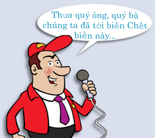 - Thưa quý ông, quý bà, chúng ta đã tới biển Chết, biển này...