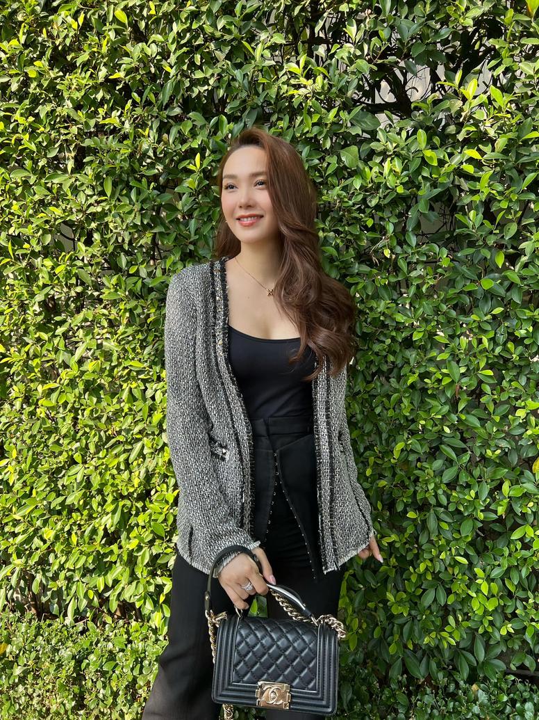 Nữ ca sĩ Minh Hằng đăng tải loạt ảnh khoe sắc trên đường phố Sài Gòn. Trong hình, bà mẹ 1 con diện áo thun khoe thềm ngực, kết hợp cùng quần thun đen. Cô mặc thêm một chiếc áo khoác dài tay bên ngoài nhằm che nắng, vừa giúp cho tổng thể trang phục trông hài hòa hơn. Người đẹp càng trông thu hút với mái tóc uốn xoăn sóng buông lơi, cùng tông make up nhẹ nhàng.
